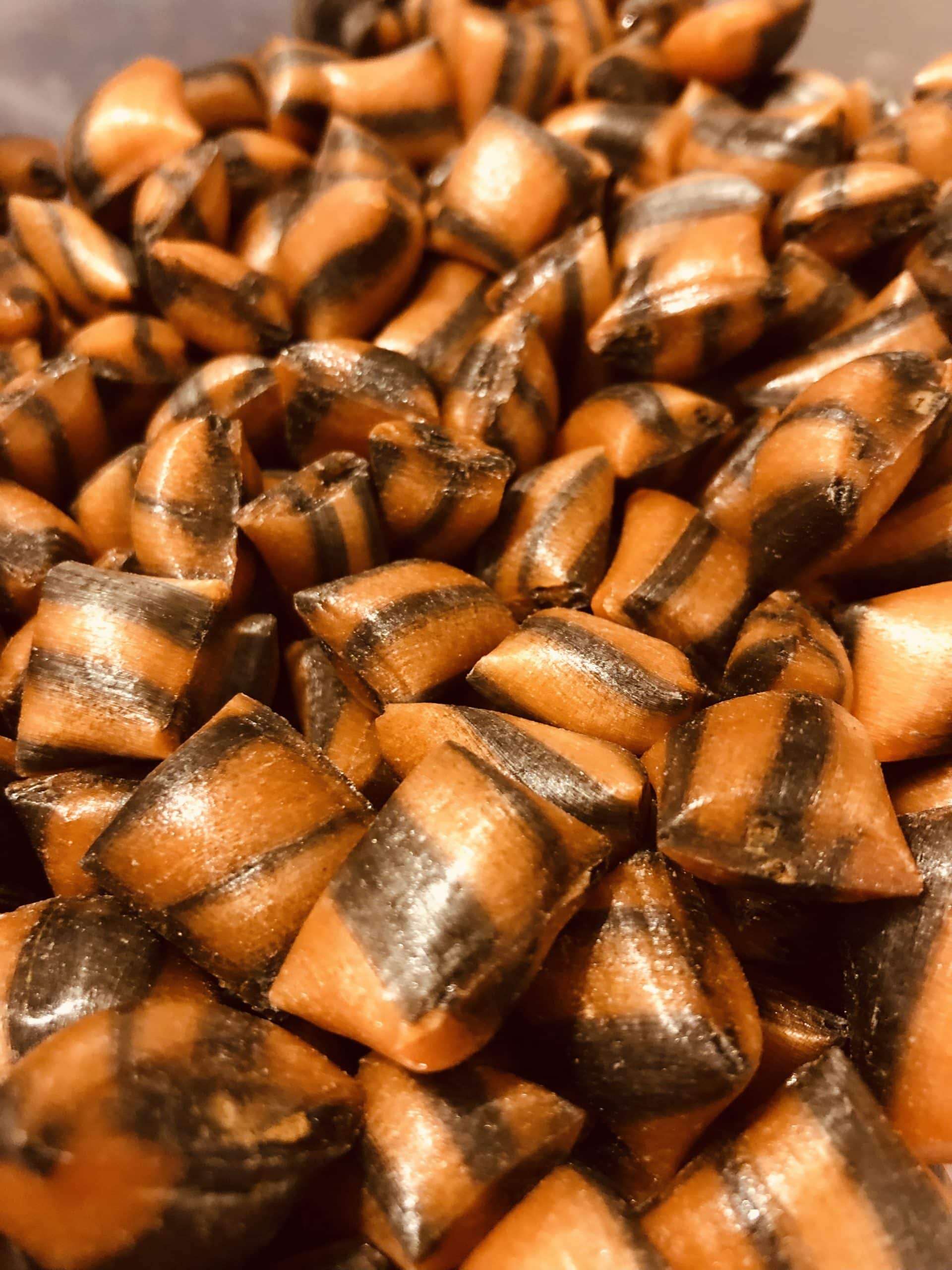 Unsere Bonbons werden aus Glukosesirup, Traubenzucker und Wasser hergestellt. Der von uns verwendete Glukosesirup wird aus Weizen und Gerste gewonnen, aber der Restglutengehalt ist so gering, dass wir unsere Bonbons als glutenfrei bezeichnen dürfen.