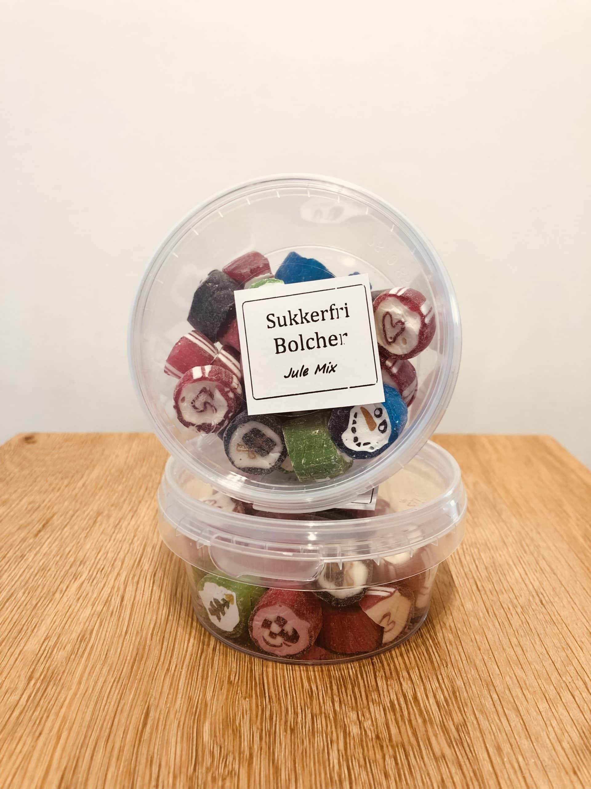 Når man køber blandede sukkerfrie bolcher hos os, bliver de pakket i en klar og lufttæt bøtte med plads til 100 gram nydelige og velsmagende bolcher, klar til at blive genbrugt igen og igen, efter eget behov.